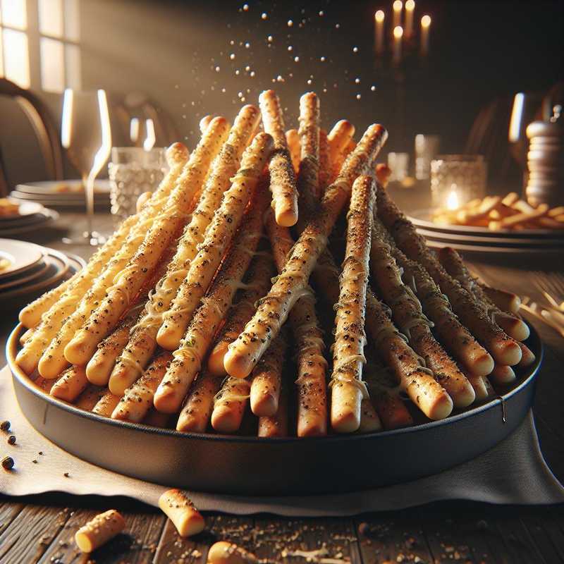 Cacio e pepe grissini are a delight that combines the traditional Piedmontese baking traditions with the typical flavors of Roman cuisine. Perfect as an appetizer or to accompany aperitifs, these grissini encapsulate the bold flavor of pecorino romano and the spiciness of black pepper, making them irresistible to the palate.