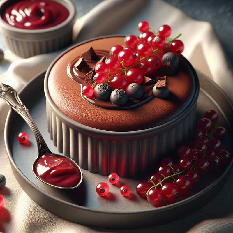Olive Oil Chocolate Mousse with Red Currant Coulis