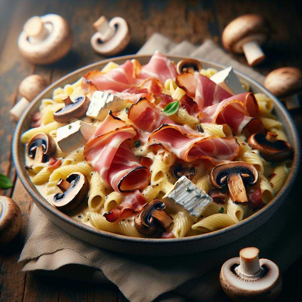 Creamy Pasta with Mushrooms, Speck, and Brie