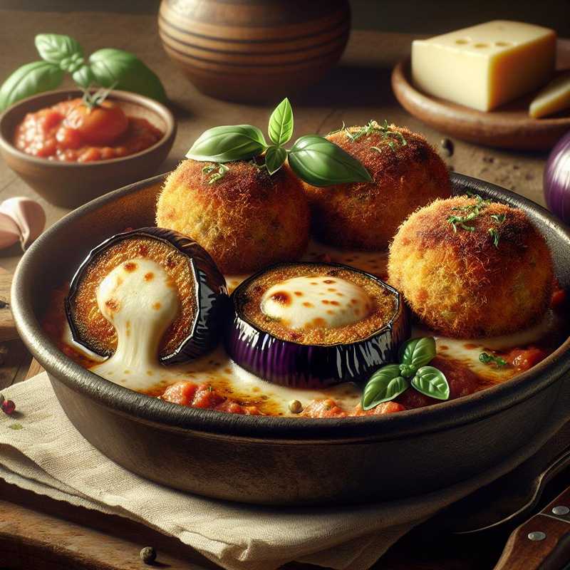 This dish is an excellent example of how Italian cuisine is a master at reinventing simple ingredients like eggplants to create surprising dishes. Scamorza cheese, with its delicate yet distinctive flavor, adds a dimension of taste and a pleasantly creamy surprise at the center of each meatball.