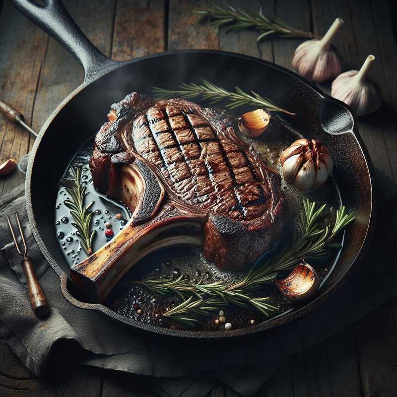 Seasoning: Massage the steak with oil and rub generously with coarse salt and freshly ground pepper on both sides. You can also add crushed garlic cloves and fresh rosemary needles for an aromatic infusion.