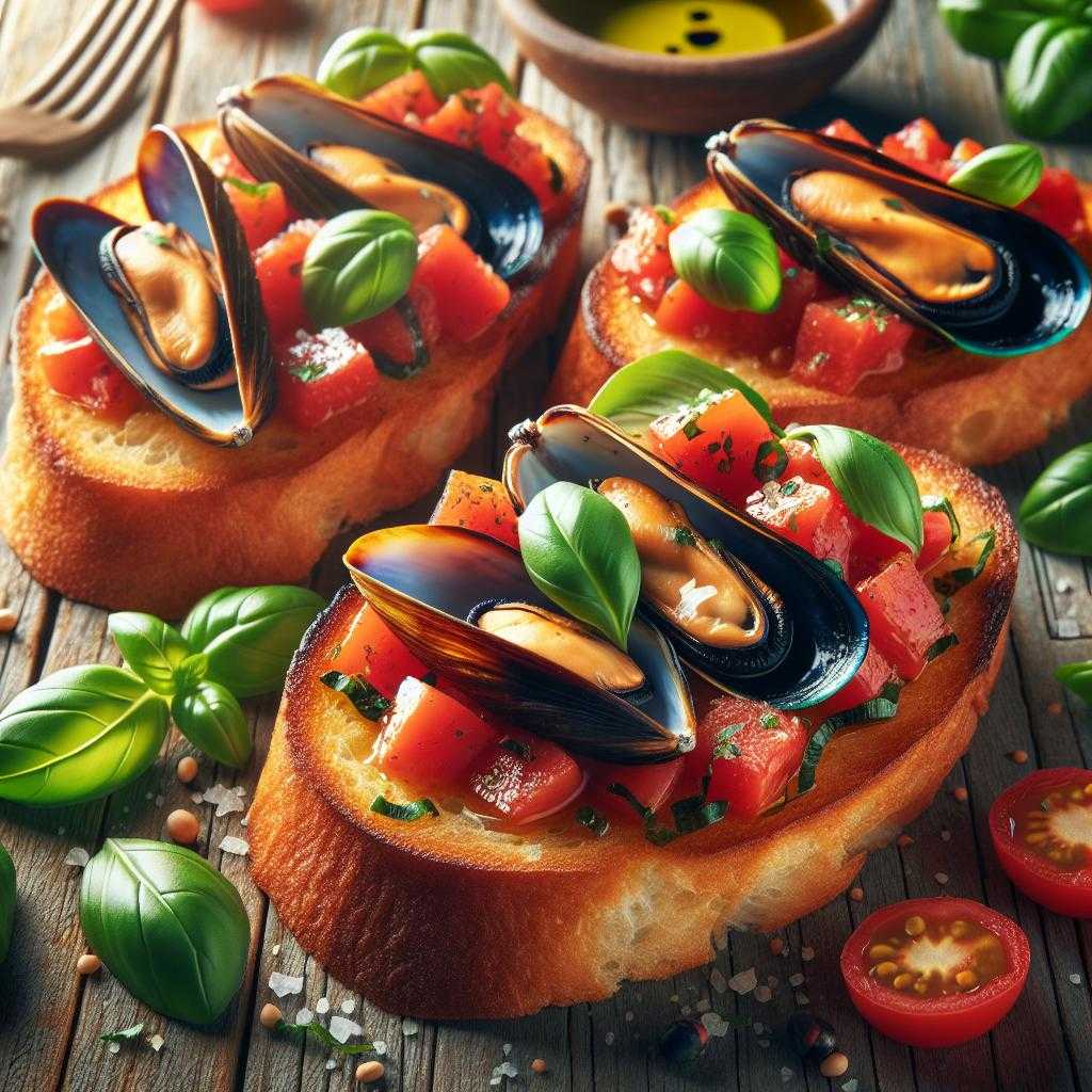 In Mediterranean cuisine, mussels are highly valued for their sea flavor and easy preparation. The pairing with fresh cherry tomatoes creates a perfect balance between the intense taste of the mussels and the sweetness of the tomatoes, making the crostini a light appetizer but full of flavor.