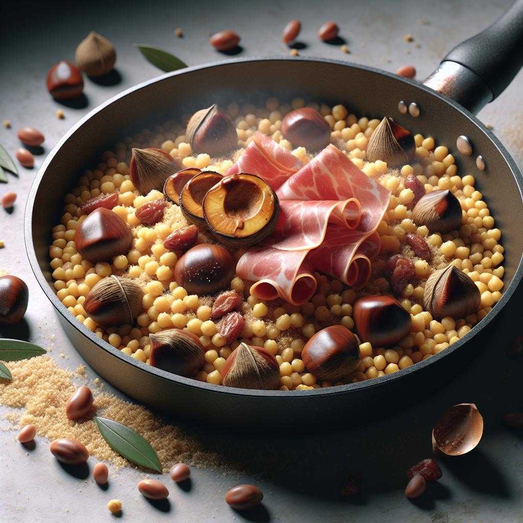 17/11/2023Possiamo creare una ricetta che unisce i legumi, le castagne e lo speck in un piatto gustoso e saporito. Ecco come potresti preparare dei chicchi di farina di legumi con castagne e speck, stile italiano.
