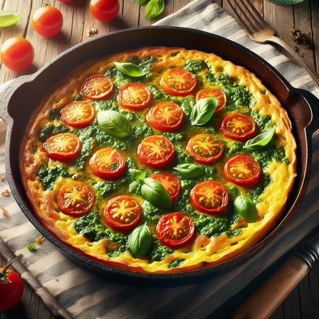 La frittata è una preparazione molto versatile che può essere arricchita con una grande varietà di ingredienti. Il pesto, tipico della Liguria, dona una nota di colore e sapore che ricorda le giornate estive, mentre i pomodori aggiungono una piacevole acidità.