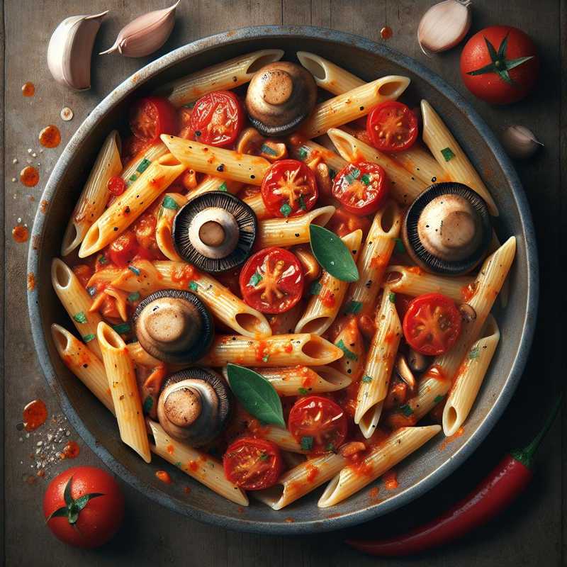 Ecco pronto un piatto che unisce la piccantezza delle penne all’arrabbiata con il gusto umami dei funghi. Buon appetito!