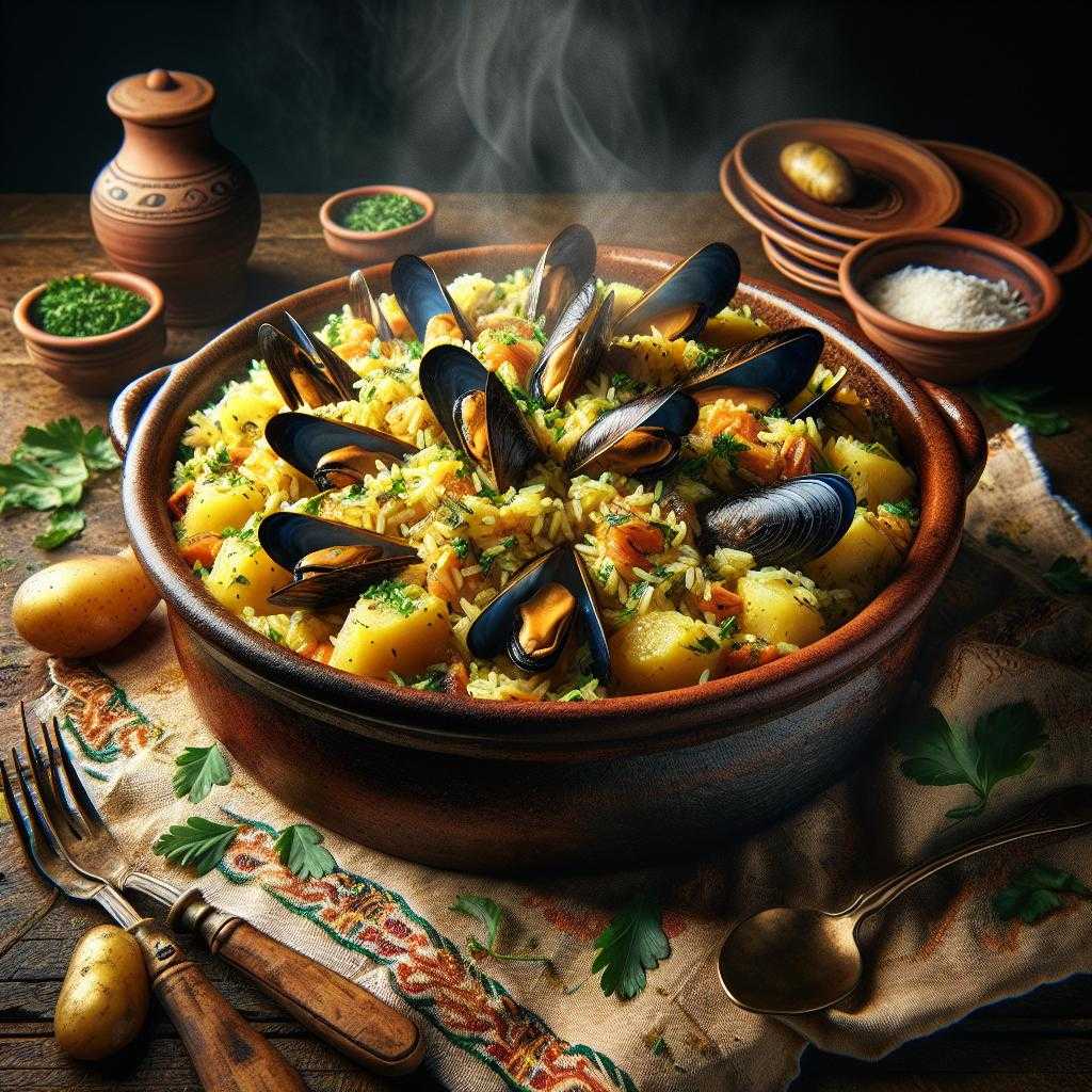 Prendi una teglia larga e bassa (tradizionalmente di terracotta), e ungi il fondo con un po’ d’olio. Inizia a creare strati alternati con le patate, poi il riso (mediamente crudo, ma alcuni preferiscono soffriggere anche il riso prima di farlo), i pomodori, le cozze sgusciate e un po’ del liquido di cottura delle cozze. Ciascuno strato dovrebbe essere condito con prezzemolo, sale, pepe nero e un filo d’olio.